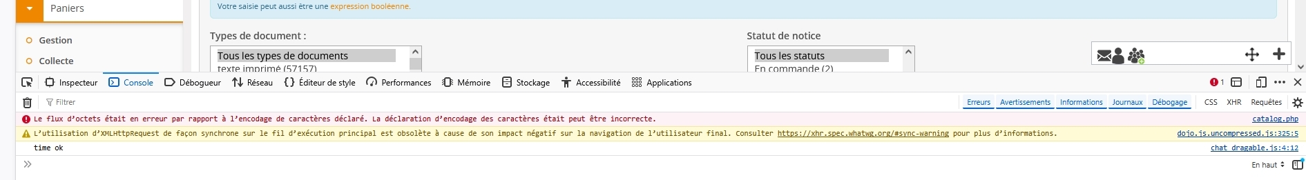• Voici une copie du  fichier error log, et des captures des erreurs js sur firefox et chrome.